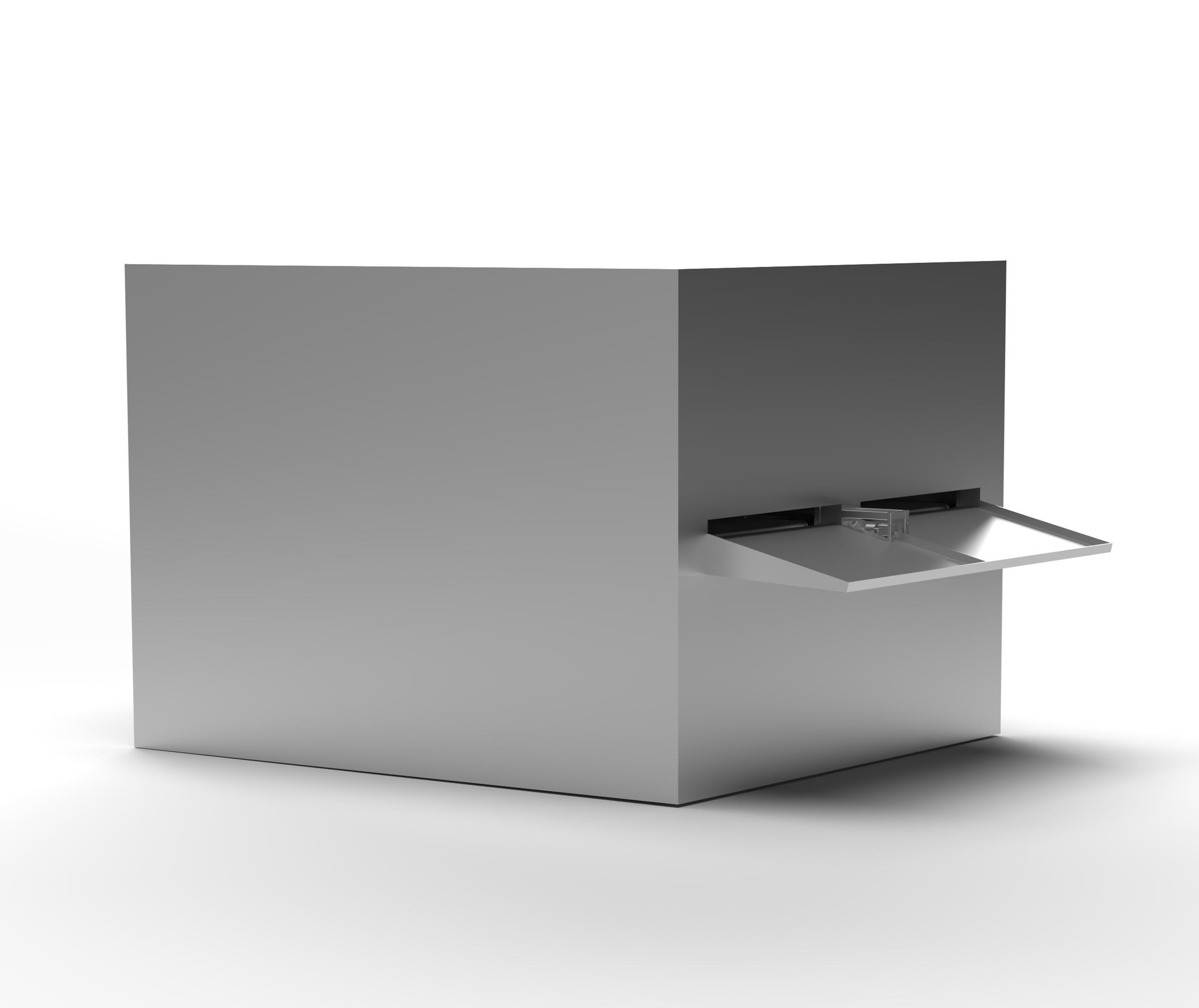 Die Produkte werden nach dem First-In-First-Out-Prinzip ausgegeben. Hier über eine Blechrutsche direkt in Versandkörbe. Eine Anbindung an andere Anlagen wären über ein Förderband ebenso möglich. Der Durchlauffroster von WP RIEHLE eignet sich daher perfekt für die Integration in Produktionslinien. Zur Reinigung des Frosters kann der komplette innere Block komfortabel ausgefahren werden.