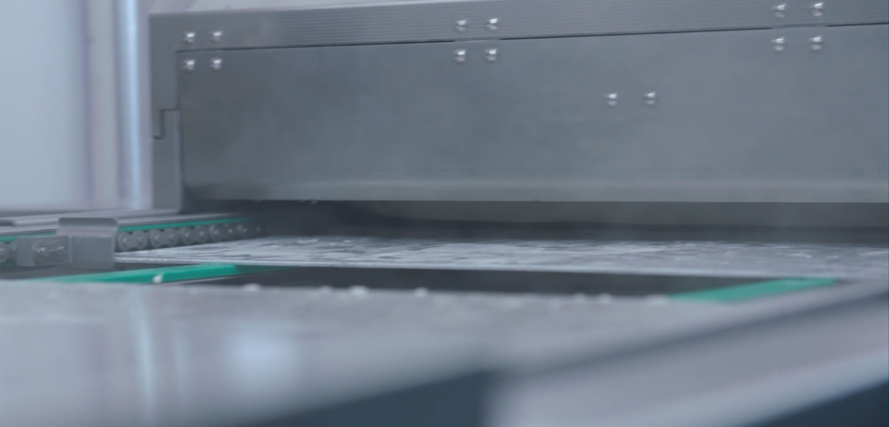 Nachdem der Wagen auf seiner linken Seite fertig ist, startet er den Prozess auf der rechten Seite. Während dessen, kann auf der linken Seite ein neuer Wagen in Position gebracht werden. Ist auch die rechte Seite abgearbeitet, kann auch dort der Wagen getauscht werden, während der Prozess auf der linken Seite läuft. So wird ein durchgängiger Arbeitsfluss gewährleistet.